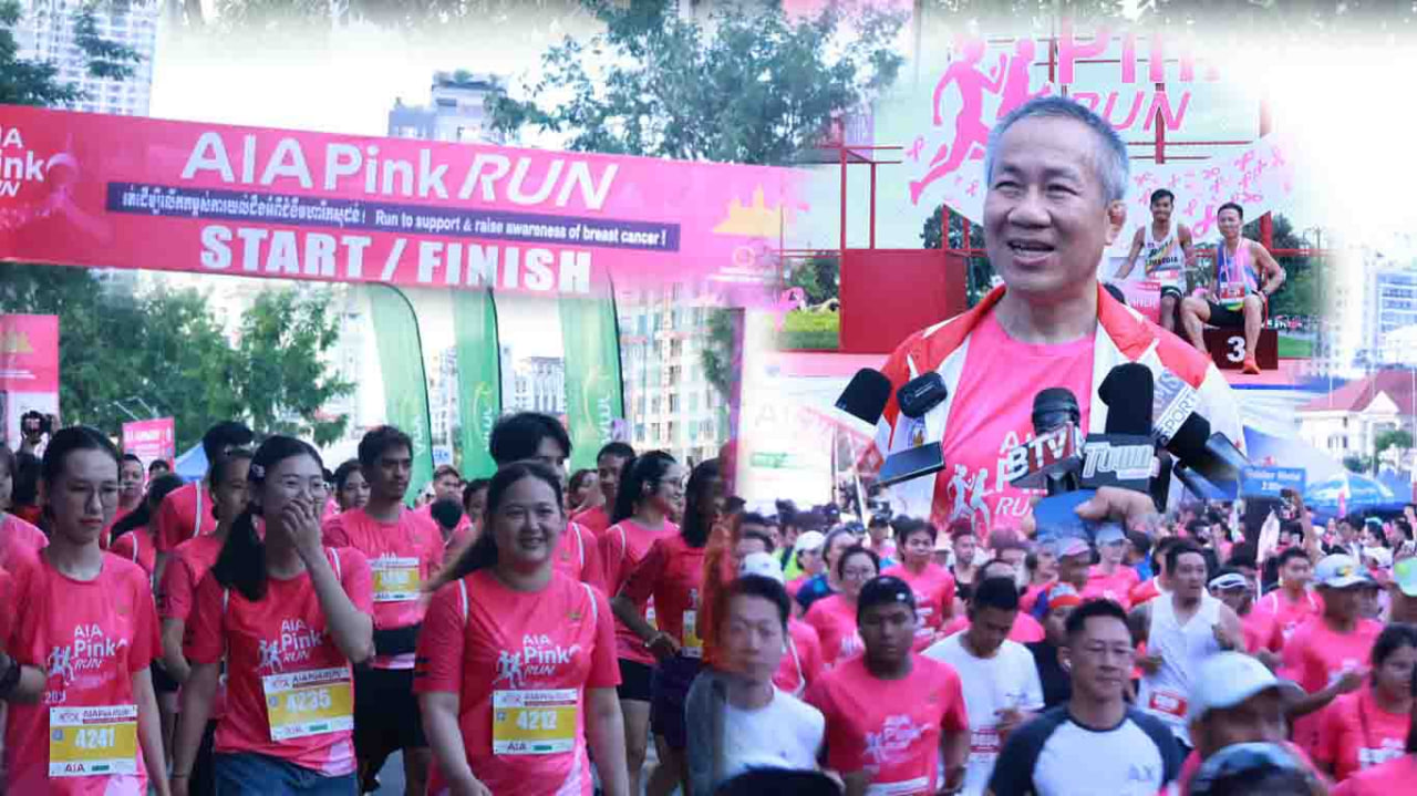 ភ្នំពេញ៖ ប្រជាពលរដ្ឋខ្មែររួមទាំងពលរដ្ឋបរទេសប្រមាណជិត៥ពាន់នាក់កាលព្រឹកថ្ងៃទី១៩ ខែតុលា ឆ្នាំ២០២៥ បានចូលរួមព្រឹត្តិការណ៍រត់ប្រណាំង AIA Pink Run លើកទី៣ ឆ្នាំ២០២៥ នៅសួនច្បារមុខវត្តបទុមវតី រាជធានីភ្នំពេញ។ នករត់ប្រណាំជិត៥នាក់នាំគ្នាផ្សព្វផ្សាយលើកកម្ពស់ការយល់ដឹងនិងទប់ស្កាត់ជំងឺមហារីកសុដន់, លោក វ៉ាត់ ចំរើន រដ្ឋលេខាធិការក្រសួងអប់រំយុវជននិងកីឡានិងជាអគ្គលេខាធិការជាតិអូឡាំពិកកម្ពុជា ថ្លែងសារដាស់តឿនក្នុងពិធីនោះ ស្នើរដល់ស្រ្តីៗគ្រប់រូបគួរពិនិត្យសុខភាពជៀសវាងជួបហាភិភ័យ។