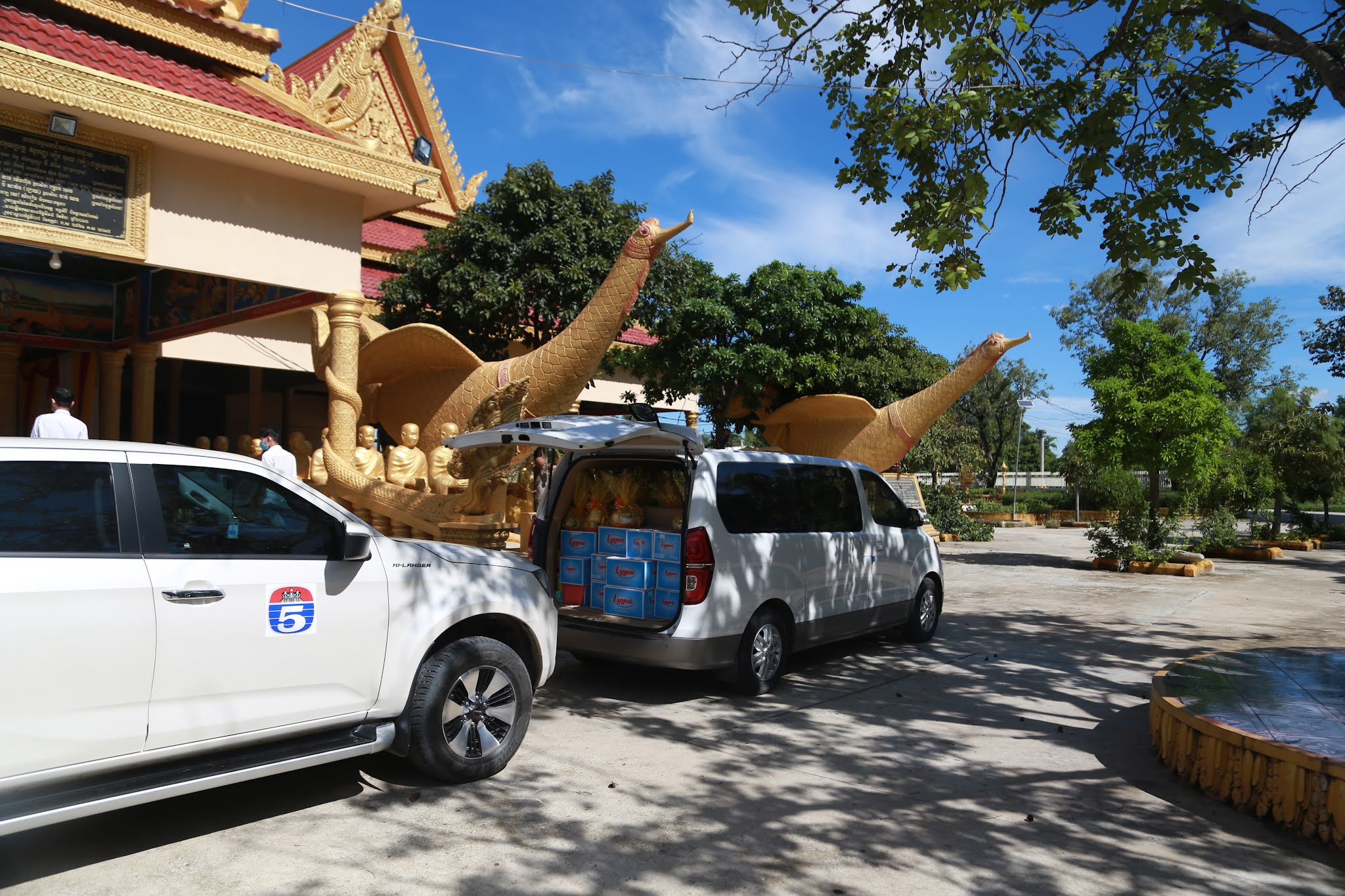 លោកបណ្ឌិត សុប៉ាឆៃ វិរៈភូជុង្គ ដែលជាអគ្គនាយកប្រតិបត្តិនៃក្រុមហ៊ុនខាងលើនេះ បានដឹកនាំក្រុមការងារជាពិសេសថ្នាក់ដឹកនាំស្ថានីយទូរទស្សន៍លេខ៥ ក្នុងយកទ័យវត្ថុ សម្រាប់ព្រះសង្ឃ ក្នុងការប្រើប្រាស់ជាចំបាច់មានដូចជា ទឹកបរិសុទ្ធលីយ៉ុង២០០កេសធំ, ថ្នាំពេទ្យកម្រិតបឋមប្រើប្រាស់ក្នុងគ្រាវិបត្តិកូវិដ១៩ចំនួន២០០កេសធំ, ទឹកផ្លែឈើពៅសុខភាពម៉ាក Blue ២០០កេសធំ, ស្លាដកចំនួន១០០, និងបច្ច័យមួយចំនួនៗសម្រាប់១០០វត្ត។